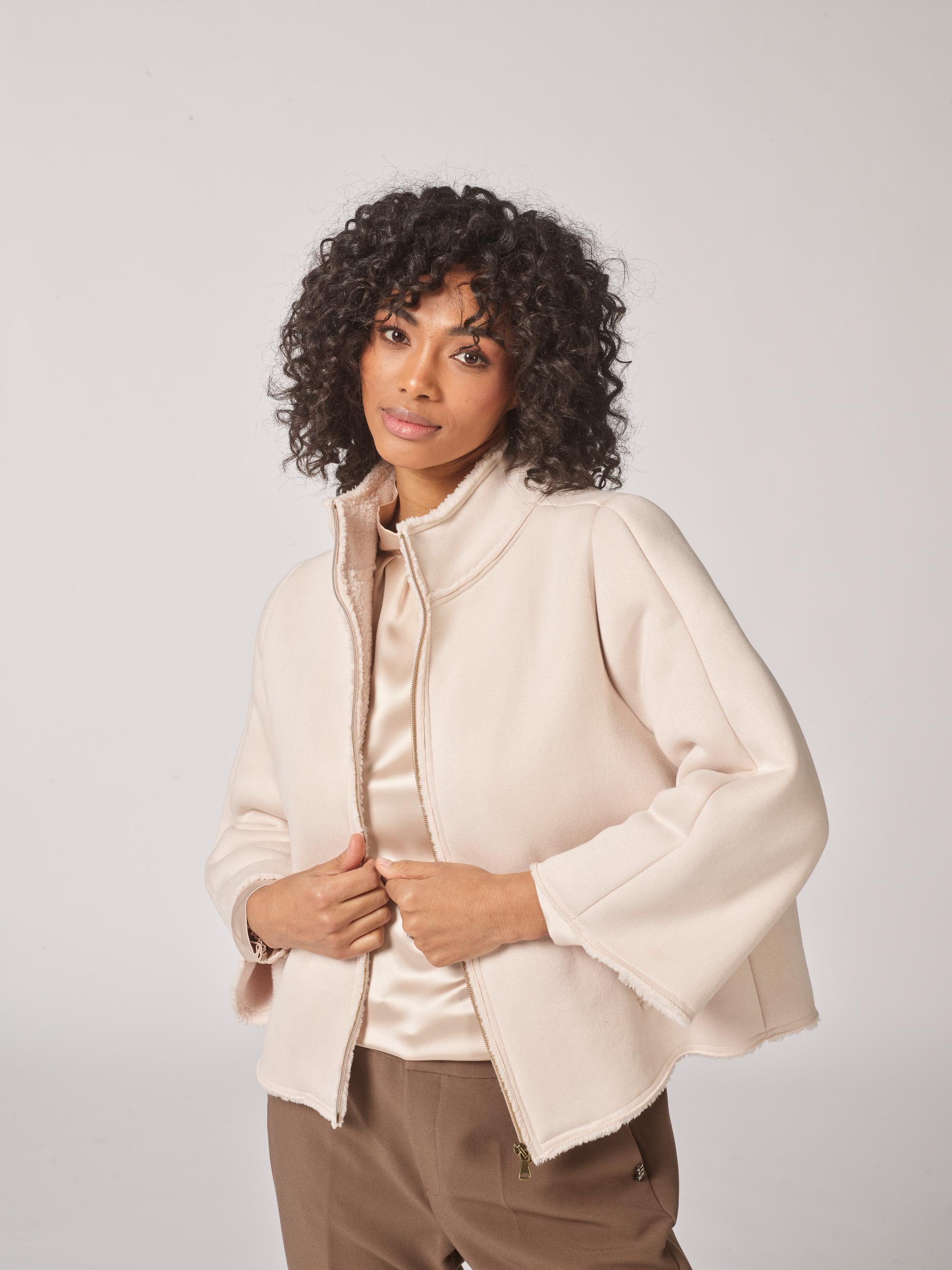 Teddy cape met driekwartsmouw - Ecru