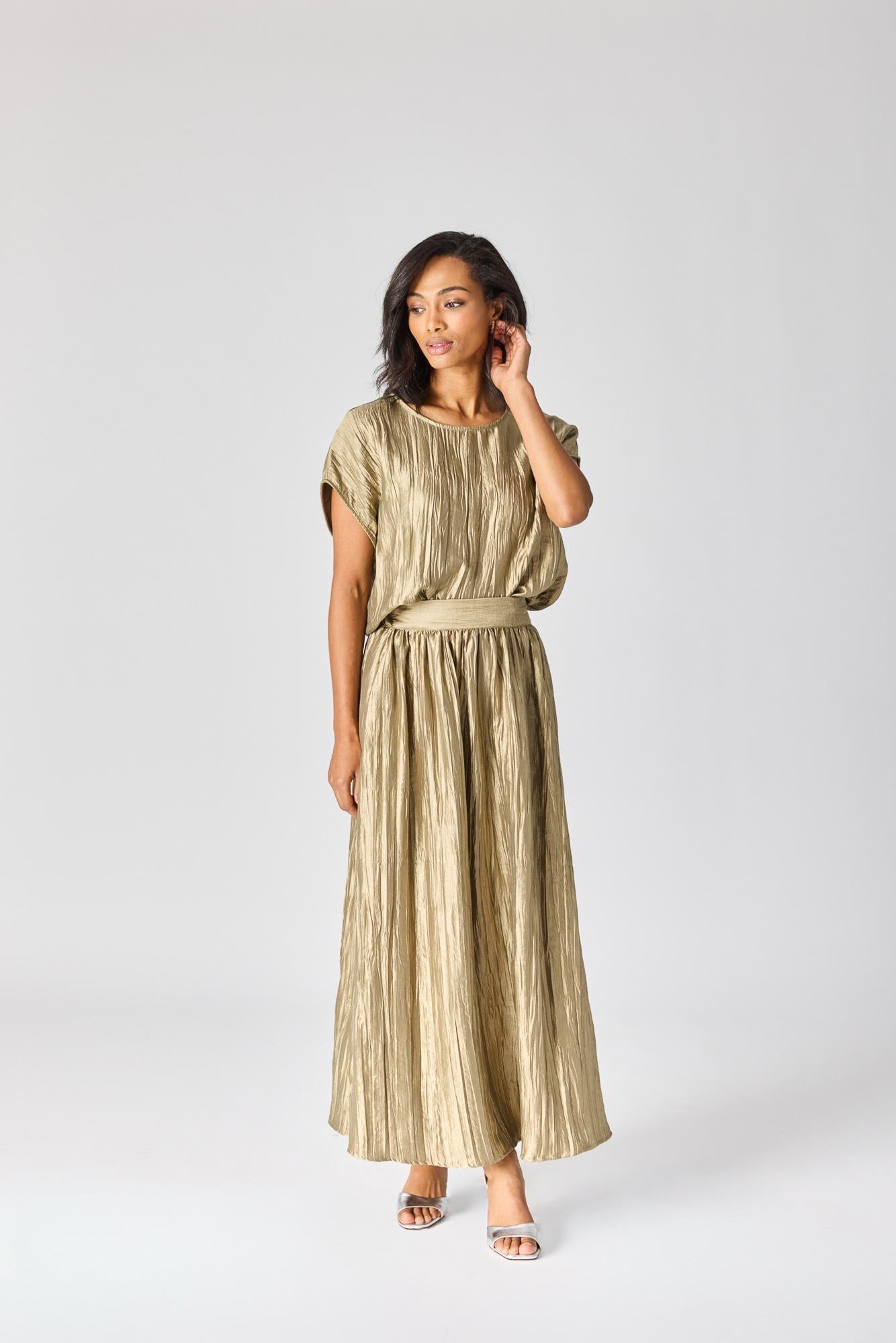 De COLETTE top in frippé is een speels, kort model. De frippé stof zorgt voor een subtiele, elegante textuur, terwijl de rekker in de zoom het topje een mooie blousende pasvorm geeft.